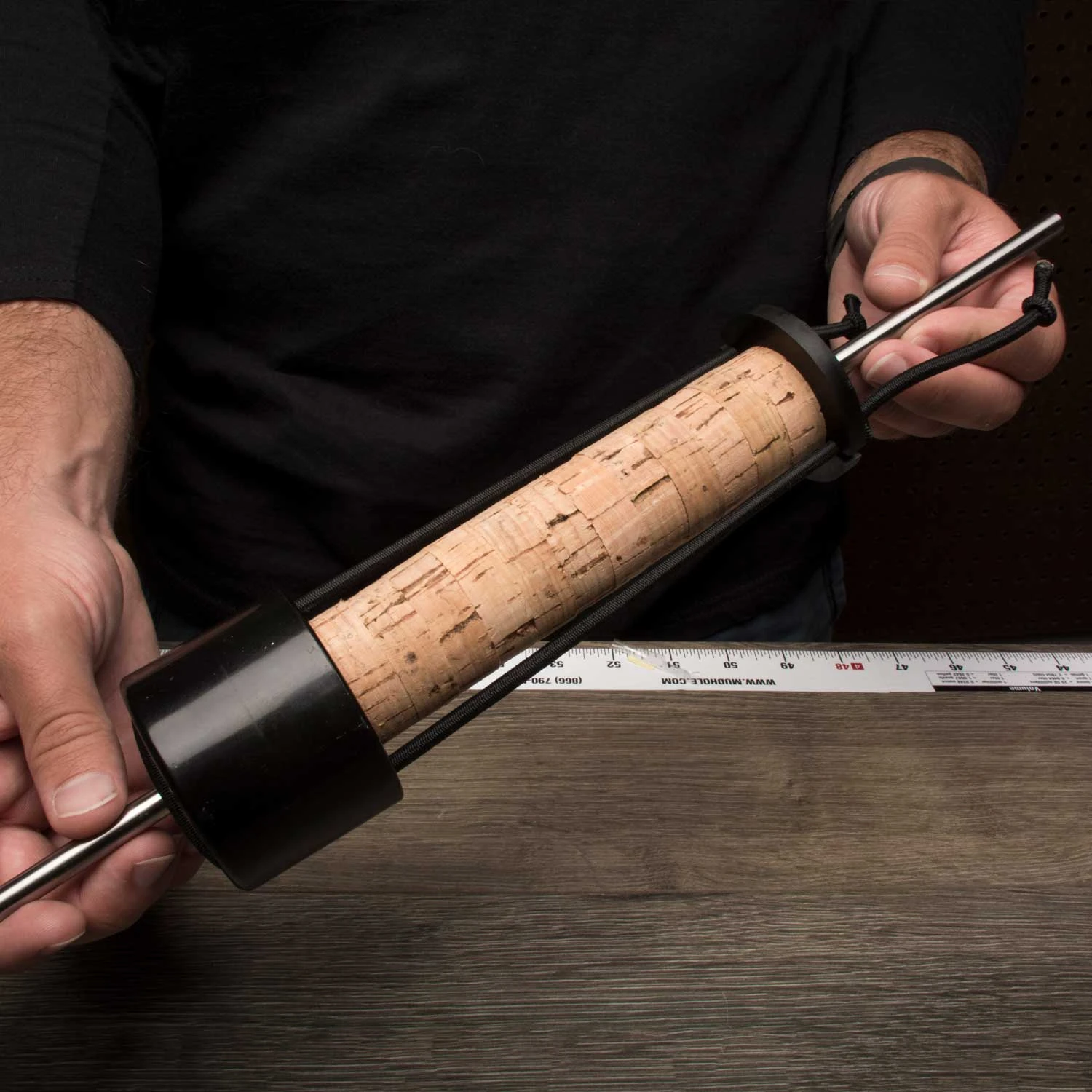 Simply place your rod’s butt end in the PVC end cap and stretch the securing disc to the end of the foregrip or winding check… leave it on your rod to cure overnight for tighter handles!