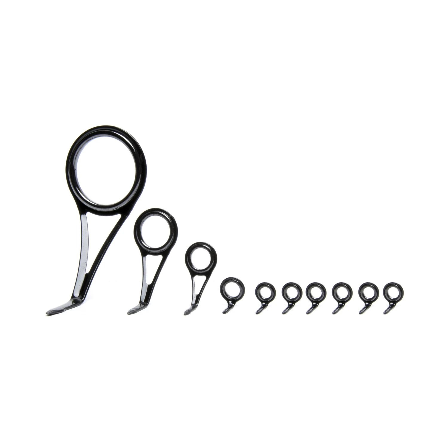 Our STANDARD guides feature traditional “cone of flight” layouts with Aluminum Oxide ceramic insert rings. Created decades ago, Aluminum Oxide is one of the very first ceramic insert materials – but don’t let it’s age fool you – Aluminum Oxide guides are still widely deployed on fishing rods today. Excellent performance to value ratio.