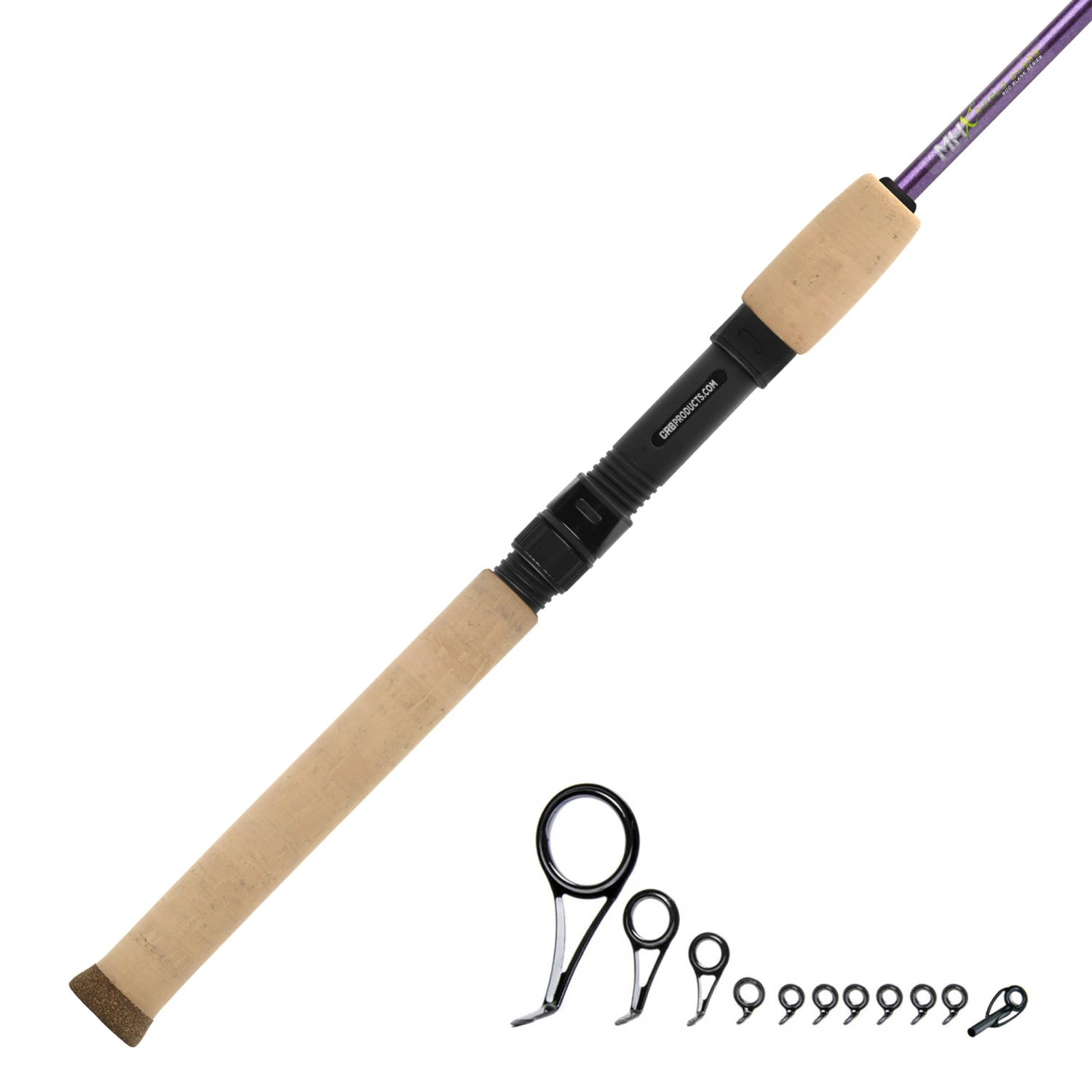This rod kit comes with CRB ELITE grade guides offered in a “Concept-Style” layout and are constructed with diamond polish Zirconium Oxide inserts. The ELITE guides feature a thinner profile ring with an ultra-smooth bezel resulting in lighter weight, and superior performance capable of taming the most aggressive braided lines.
