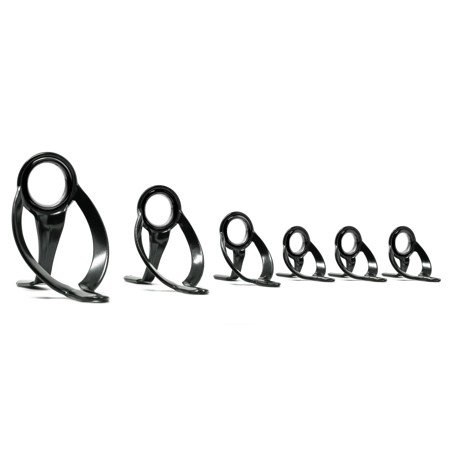 The ultimate in an XTRA Heavy Duty offshore guide frame, these guides match the style of the classic Virtus guide design adding a #50-#200 Unlimited line rating option to complete the series. Broad thick gauge stainless and solid titanium material frames offer distortion proof durability along with a wide foot design for increased lateral stability. High ring locations clear line from grips and allow better guide train placement making line to blank contact a thing of the past. Ideal for trolling, bait, and rail-rod techniques.